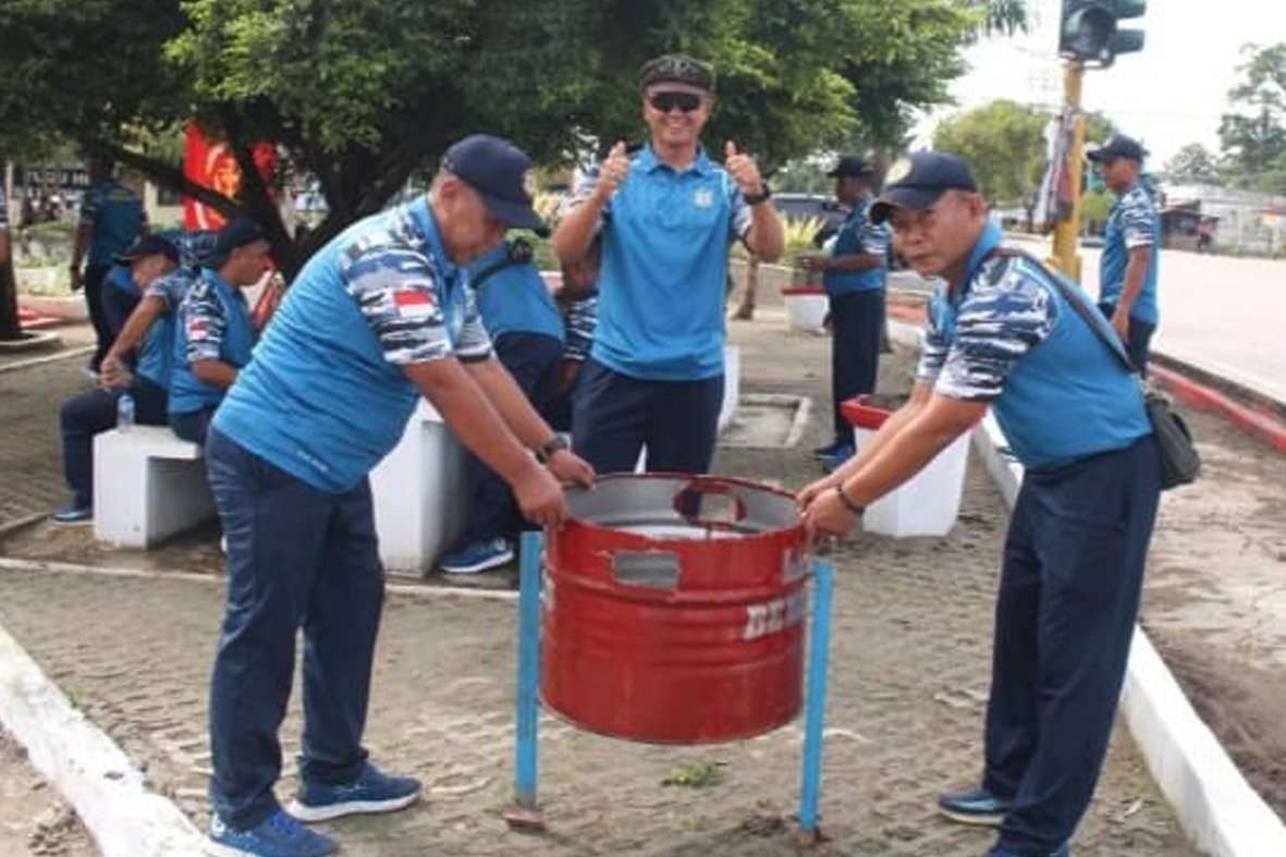 Dengan penuh semangat kebersamaan dan jiwa gotong royong, para prajurit Lanal Bengkulu membersihkan area monumen dan lingkungan sekitarnya.