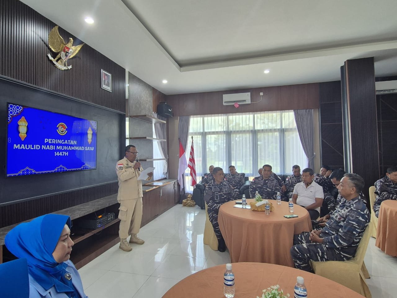 Peringatan Maulid Nabi Besar Muhammad SAW 1447 H/2025 M yang diselenggarakan di Lanal Bintan, diharapkan Prajurit Lanal Bintan dapat mentauladani Nabi Muhammad SAW dalam kehidupan sehari-hari supaya dalam menjalin kehidupan senantiasa rukun dan damai.