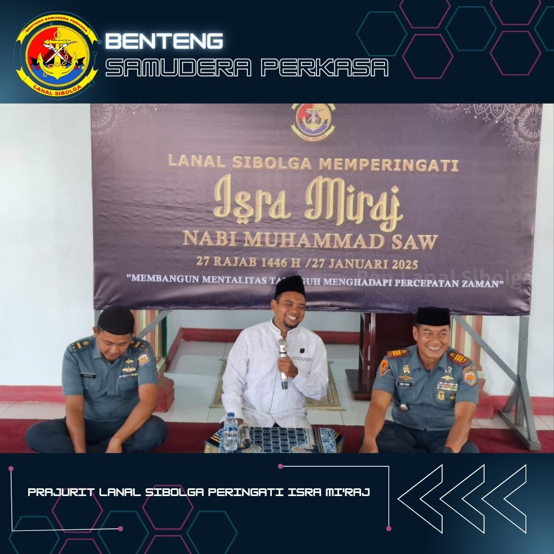 Secara terpisah, Komandan Lanal Sibolga Letkol Laut (P) Robiyanto, S.H., M.Tr. Hanla., menyampaikan “Pembenahan dan pembinaan prajurit senantiasa diarahkan kepada insan yang beriman dan bertakwa kepada Allah Subhanahu Wa Ta’ala. Dengan keterpaduan tersebut, Keluarga Besar Lanal Sibolga akan menyadari sepenuh hati serta mengaplikasikan uraian hikmah dari Isra Mi’raj. Semoga dapat menyentuh hati kita untuk lebih giat lagi menghayati dan mengamalkan ajaran Nabi Besar Muhammad Shallallahu Alaihi Wasallam,” pungkasnya.