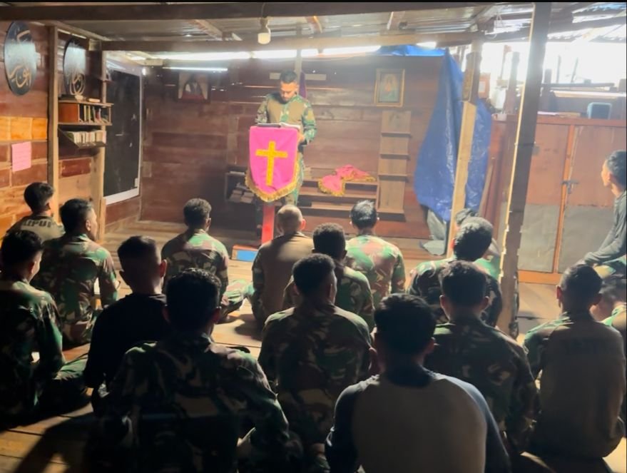 Prajurit Lintas Udara 432 / WSJ melaksanakan ibadah hari minggu di Pos Mapenduma Minggu,(09/06/2024)
