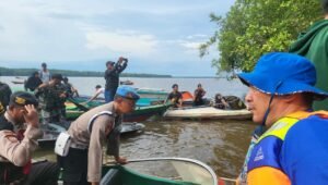 TNI AL, Kumai,- Personel Pos TNI AL Kumai, Polairud Polres Kumai, Basarnas Pangkalanbun, BPBD Kotawaringin Barat, beserta masyarakat melaksanakan pencarian terhadap bocah di Sungai Kumai akibat diterkam buaya, Sabtu (10/2/2024).