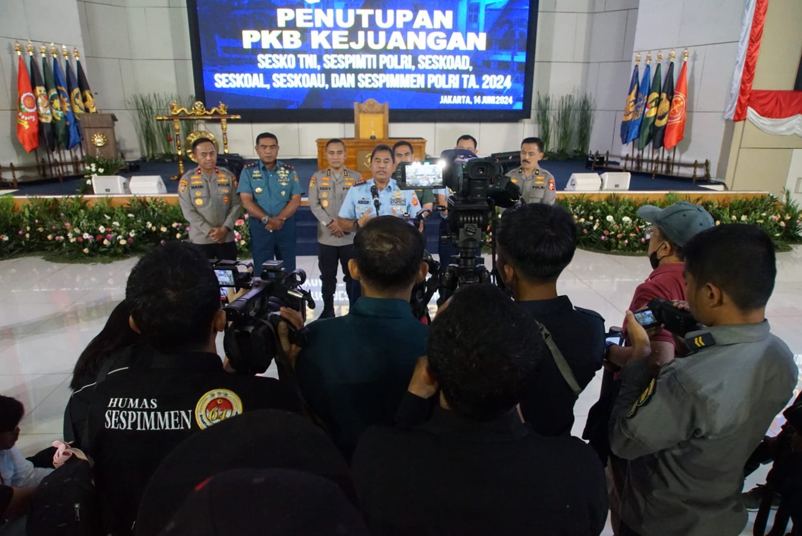 Dalam sambutannnya, Dansesko TNI selaku Irup pada Penutupan PKB Juang TA. 2024, menyampaikan pelaksanaan seminar jadikan bekal konsep strategis yang sudah kita bahas untuk memecahkan masalah aktual sebagai sumbangsih terbaik demi kepentingan bangsa dan negara serta yang lebih penting terapkan dalam kehidupan kita sehari-hari, tetap jaga Sinergitas TNI-Polri guna Mewujudkan Pertahanan dan Keamanan yang Tangguh untuk Indonesia Maju.