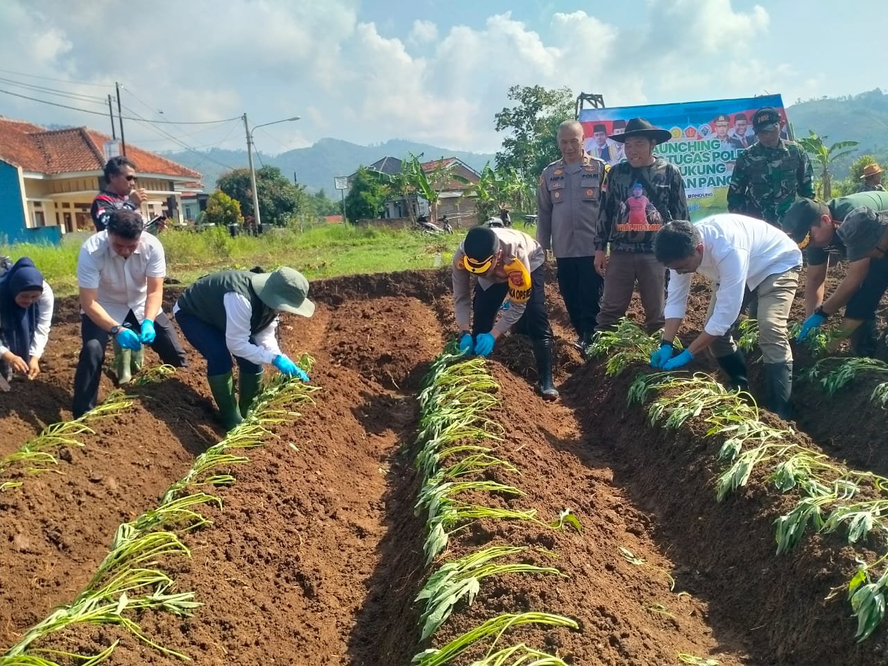 Launching tersebut ditandai dengan penanaman jagung dan ubi jalar yang dilaksanakan Pjs. Bupati Bandung Dikky Achmad Sidik, Kapolresta Bandung Kombes Pol Kusworo Wibowo diwakili Wakapolresta Bandung AKBP Hidayat, Dandim 0624/Kabupaten Bandung Letkol Inf. Tinton Amin Putra, Kepala Dinas Pertanian Kabupaten Bandung Ningning Hendasah, dan jajaran TNI, Polri, para pejabat lainnya dan para petani dari Kelompok Tani Karya Harapan.