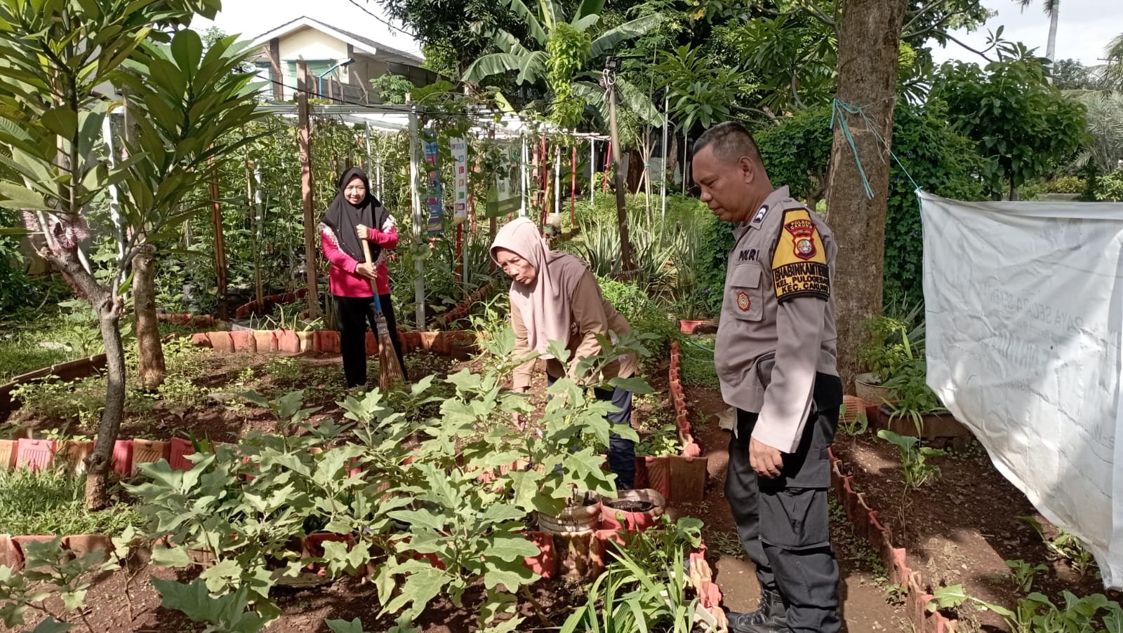 Dalam kegiatan ini, Aiptu Asep Muksin bersama anggota kelompok Rumah Education Center dan kader PKK melakukan pembinaan dan pengawasan terhadap pengelolaan lahan pekarangan yang ditanami berbagai jenis sayuran.