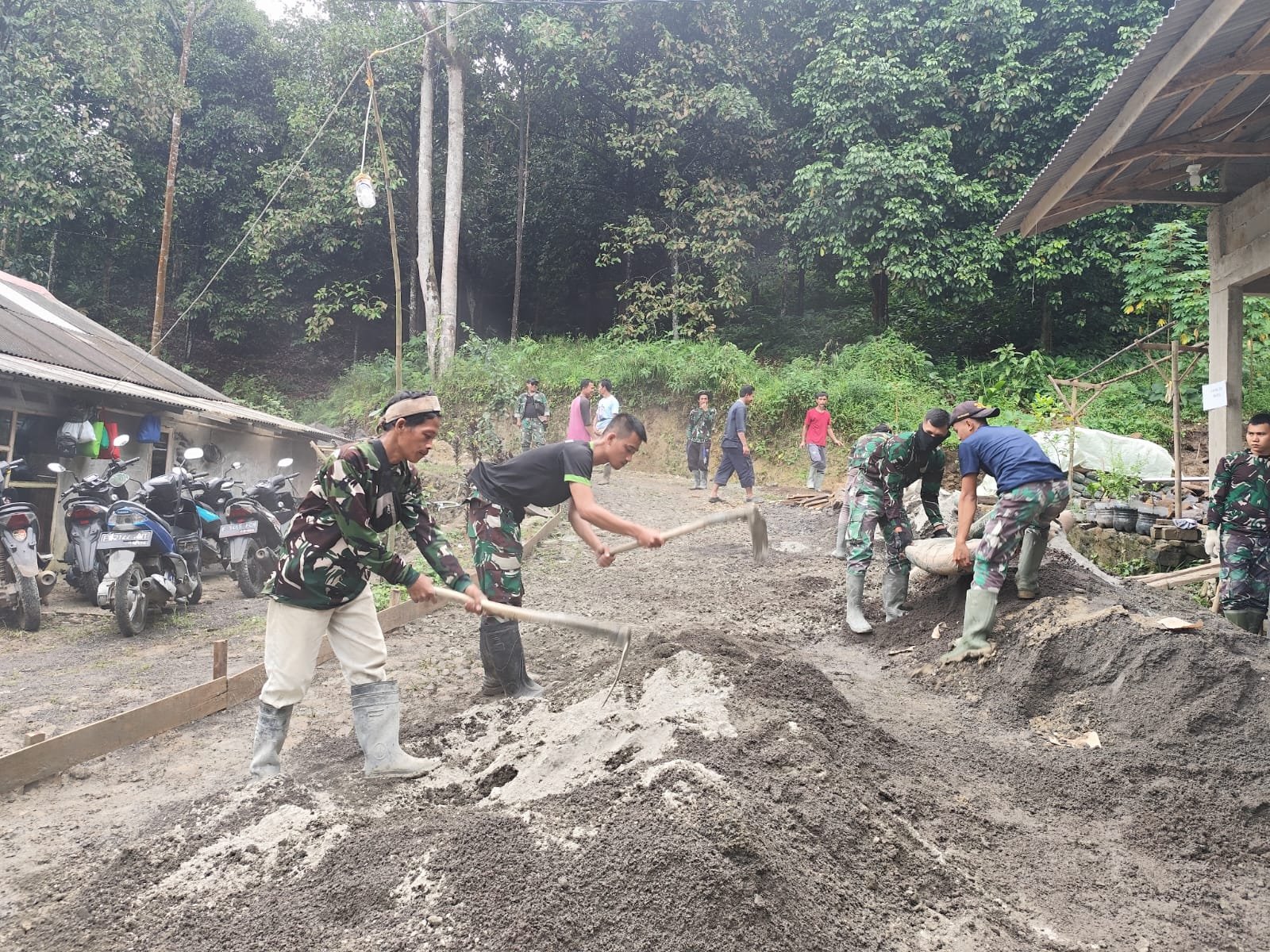 Pantauan awak Media, semua warga bergotongroyong agar Mushola bisa secepatnya selesai.Sehingga terjalin keakraban antara TNI dengan warga .