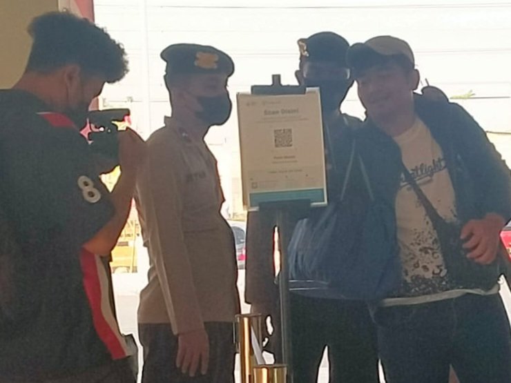 Scan barcode aplikasi PeduliLindungi wajib dilakukan bagi setiap penumpang yang akan masuk ke area dermaga Kali Adem. 311 penumpang pun melakukan scan aplikasi PeduliLindungi sesuai arahan petugas pengamanan yang berjaga di pintu masuk.