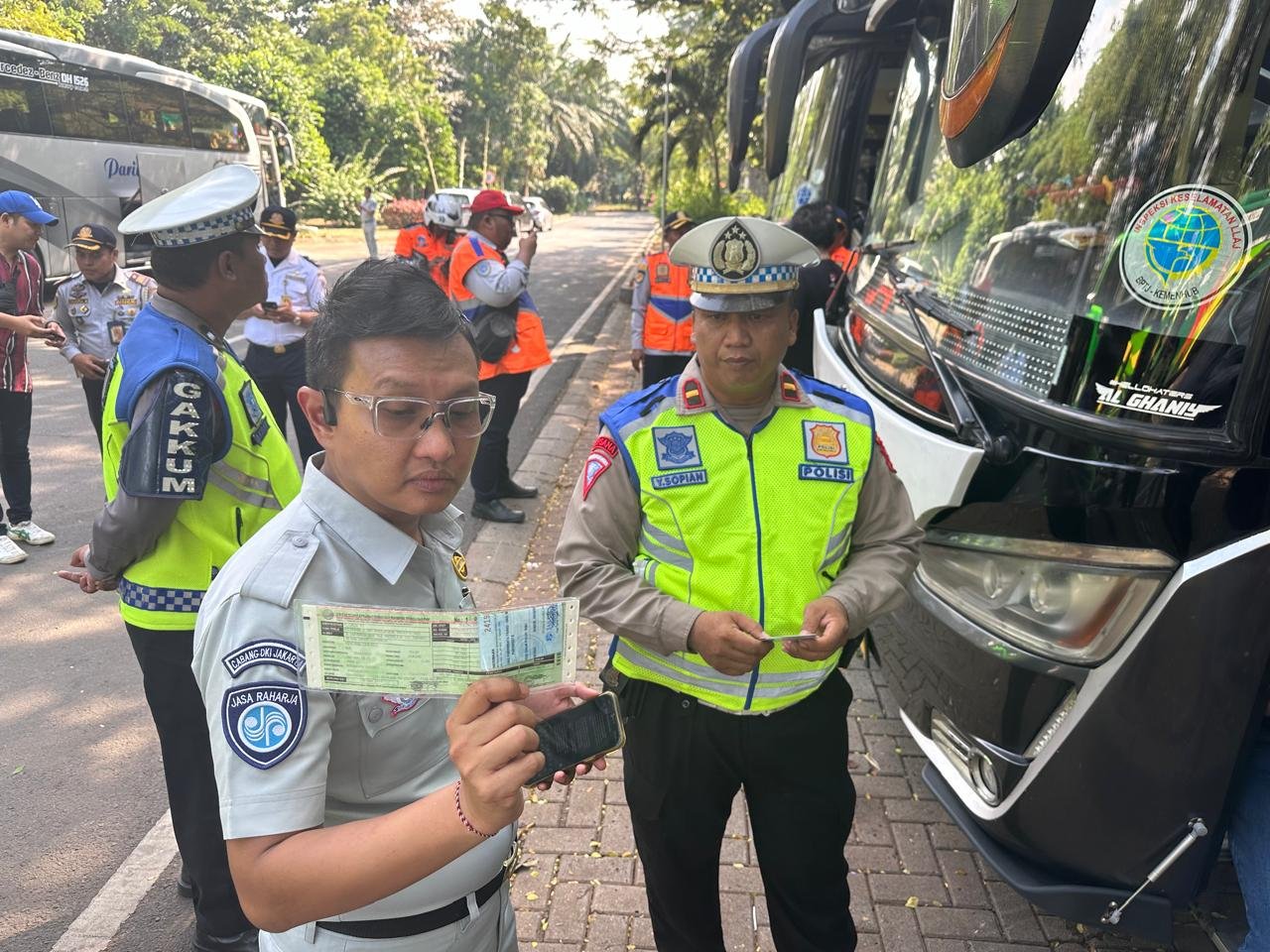 Jakarta – Dalam rangka upaya menekan fatalitas kecelakaan di jalan pada kendaraan yang melayani Angkutan Antar Kota dan Antar Provinsi (AKAP) serta Angkutan Pariwisata masa hari libur panjang (long weekend), Jasa Raharja Cabang Utama DKI Jakarta turut serta dalam giat monitoring dan pengawasan operasional (rampcheck) yang dilakanakan selama 4 hari dari tanggal 23 s.d 26 Mei 2024 di Taman Impian Jaya Ancol, Jakarta Utara.