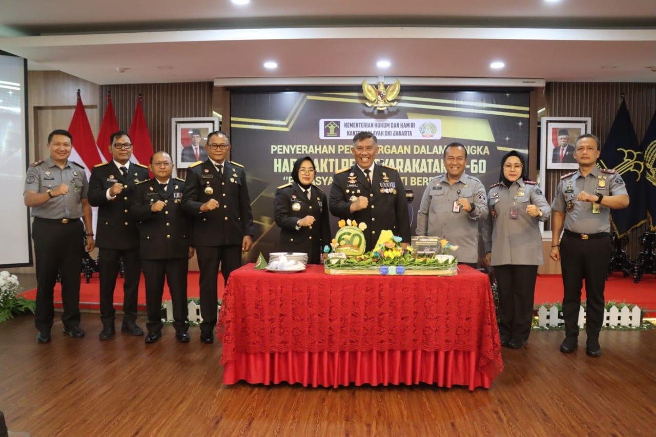 Usai melaksanakan Upacara Peringatan Hari Bhakti Pemasyarakatan, Kantor Wilayah Kementerian Hukum dan HAM DKI Jakarta menyelenggarakan rangkaian kegiatan Pemberian Penghargaan UPT dan Pegawai Pemasyarakatan di lingkungan DKI Jakarta. Kegiatan turut dihadiri oleh Inspektur Wilayah III Kementerian Hukum dan HAM, Iwan Santoso.
