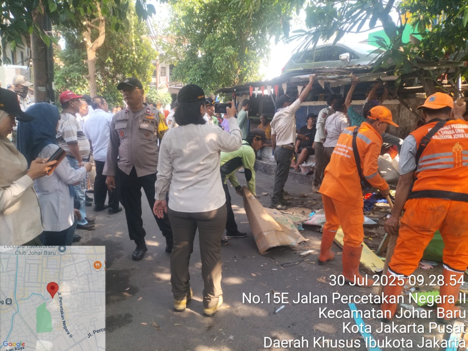 Kegiatan difokuskan pada penertiban lapak Pedagang Kaki Lima (PKL) serta bangunan liar di sepanjang: Jl. Johar Baru Utara III, Jl. Percetakan Negara I, dan Jl. Percetakan Negara II, Kelurahan Johar Baru, Kecamatan Johar Baru, Jakarta Pusat. Petugas gabungan yang terdiri dari unsur Kecamatan, Kelurahan, Satpol PP, TNI-Polri, Dishub, PPSU, LMK, FKDM, serta tokoh masyarakat turut serta dalam kegiatan tersebut.