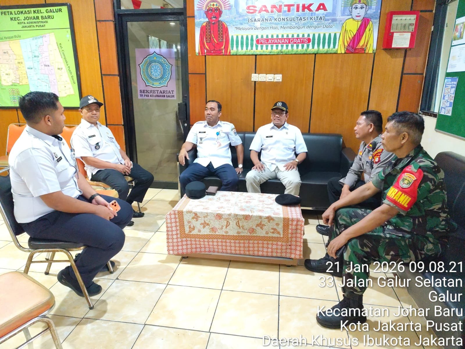 Kegiatan tersebut turut dihadiri Camat Johar Baru Ihrsan Prasetyawan, Danramil Johar Baru Mayor Tatang, Lurah Galur Kurnia Agus, Dewan Kota Rudi, serta unsur Pol PP, Dishub, FKDM, dan LMK. Melalui sinergi lintas sektor ini, diharapkan penataan wilayah Galur dapat berjalan berkelanjutan demi kepentingan bersama.