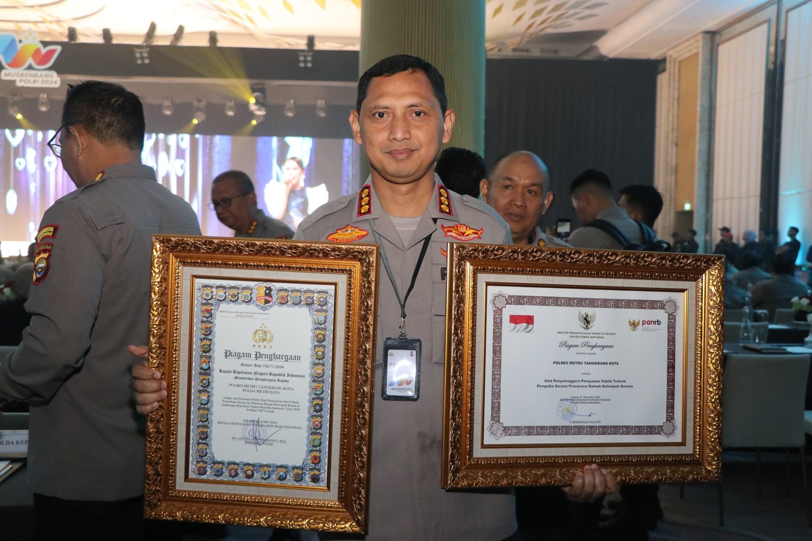 Penyerahan penghargaan itu dihadiri Kapolri, Jenderal Pol Listyo Sigit Prabowo, didampingi oleh Wakapolri Komjen Pol. Agus Andrianto, PJU Mabes Polri Para Kapolda maupun peserta Musrenbang Polri. Penghargaan diterima langsung oleh Kapolres Metro Tangerang Kota, Kombes Pol Zain Dwi Nugroho.