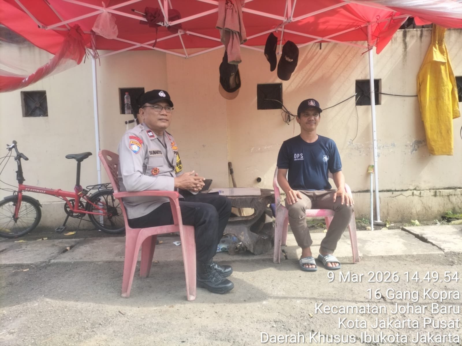 Kegiatan berlangsung di kawasan permukiman warga Jalan Percetakan Negara II RT 13 RW 06. Dalam patroli tersebut, Aiptu Sunarto melakukan cooling system dengan berdialog langsung bersama warga, termasuk Pak Jafar selaku petugas keamanan lingkungan setempat.