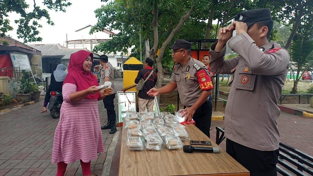 Jakarta – Selama bulan Ramadhan Polsek Kepulauan Seribu Utara membagikan takjil gratis kepada warga di depan Mako Polsek Kepulauan Seribu Utara, Pulau Kelapa, Kepulauan Seribu Utara, Minggu (09/04/2023).