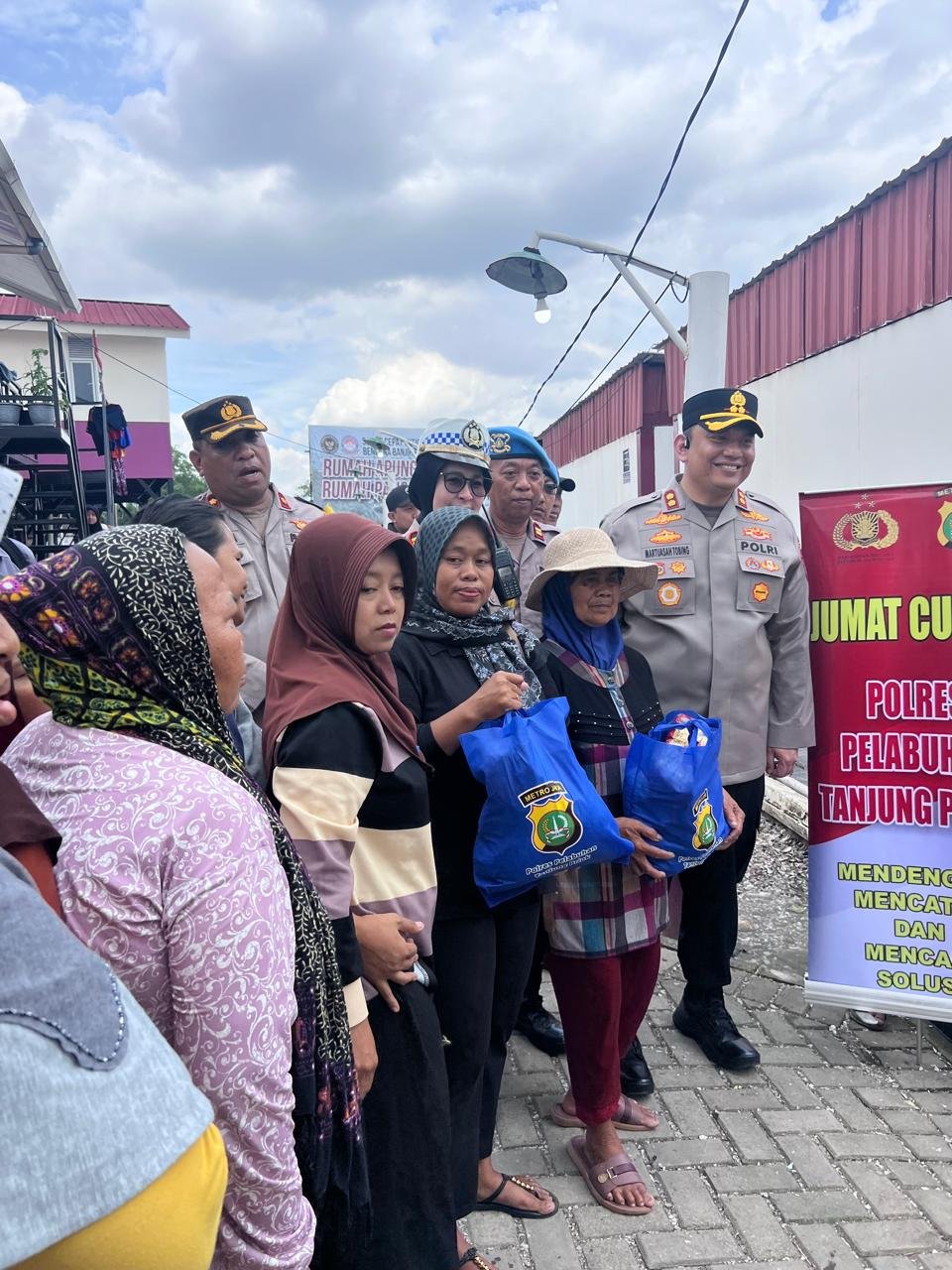 Polres Pelabuhan Tanjung Priok membagikan paket sembako yang berisi kebutuhan pokok seperti beras, minyak goreng, gula, dan makanan ringan di Pelabuhan Muara Angke. Pembagian bantuan dilakukan secara langsung oleh Kapolres dengan melibatkan anggota Polres Pelabuhan Tanjung Priok dan Polsek Kawasan Sunda Kelapa