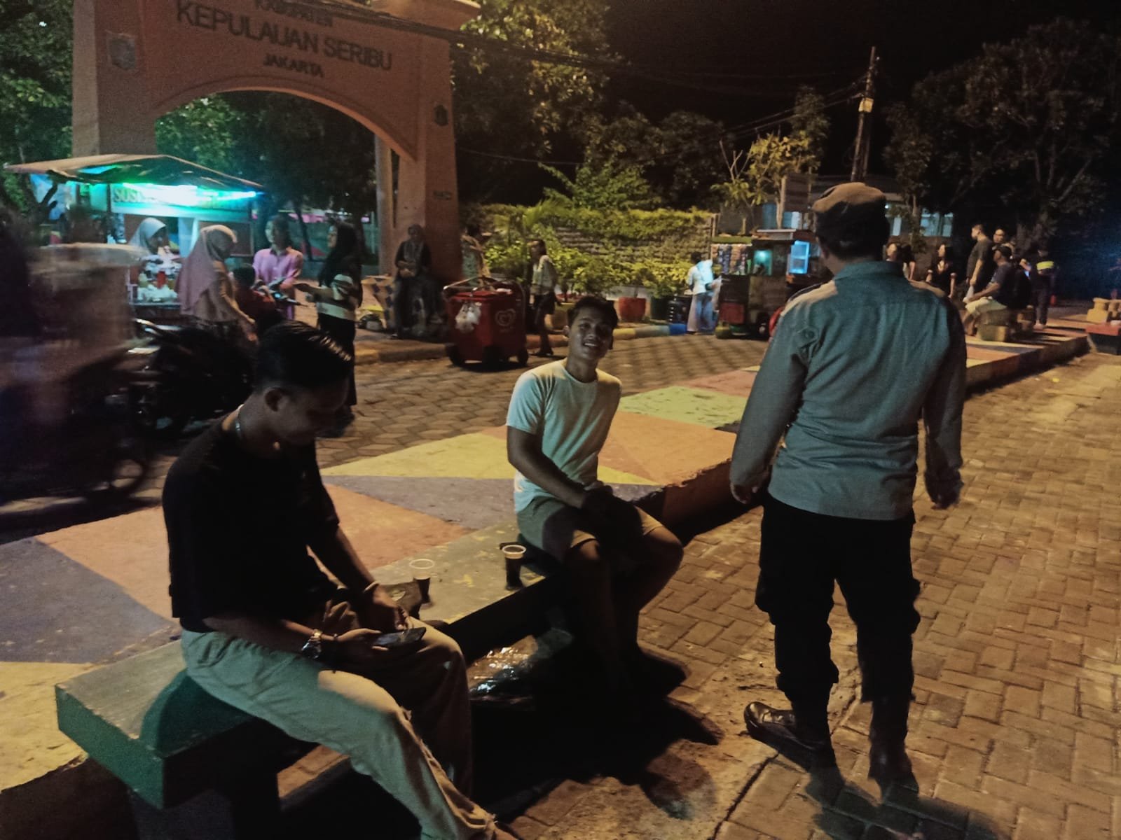 Patroli malam kali ini menyasar lokasi-lokasi tempat berkumpulnya para remaja dan wisatawan yang menghabiskan waktu akhir pekannya di Pulau Harapan.