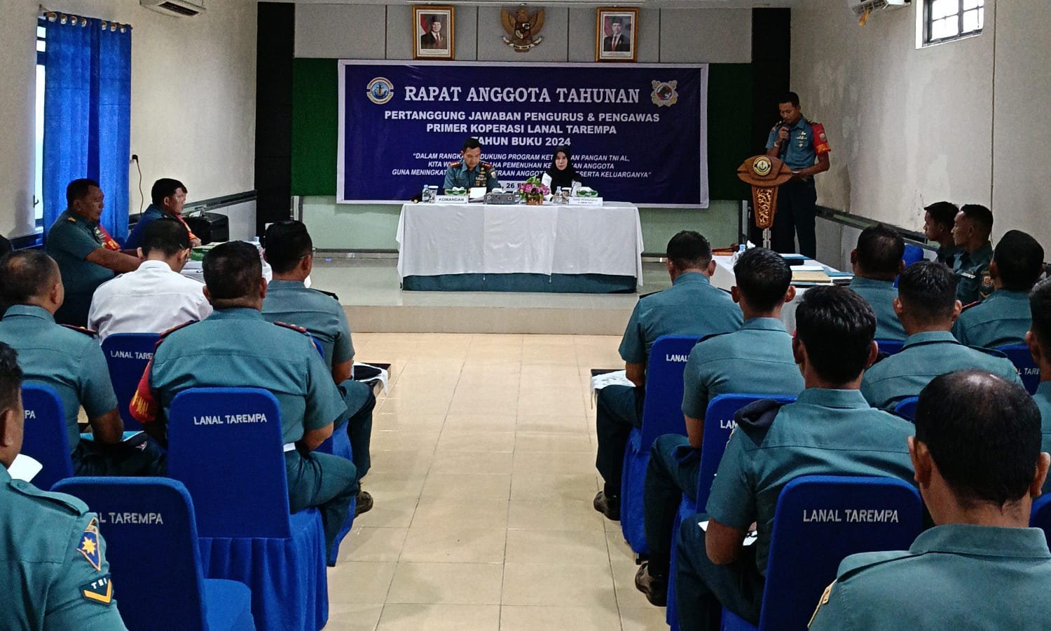 refubliknews.com, – TNI AL, Kepulauan Anambas,- Bertempat di Gedung Napoleon Lanal Tarempa, Jalan Kartini, Kelurahan Tarempa, Kecamatan Siantan, Kabuparen Kepulauan Anambas, Komandan Lanal Tarempa Letkol Laut (P) Ari Sukmana, S.E., M.Tr.Opsla., secara resmi membuka Rapat Anggota Tahunan (RAT) dalam Rapat Anggota Pertanggung Jawaban Pengurus dan Pengawas Primer Koperasi Angkatan Laut (Primkopal) Lanal Tarempa Tahun Buku 2024, Rabu (26/2/2025).
