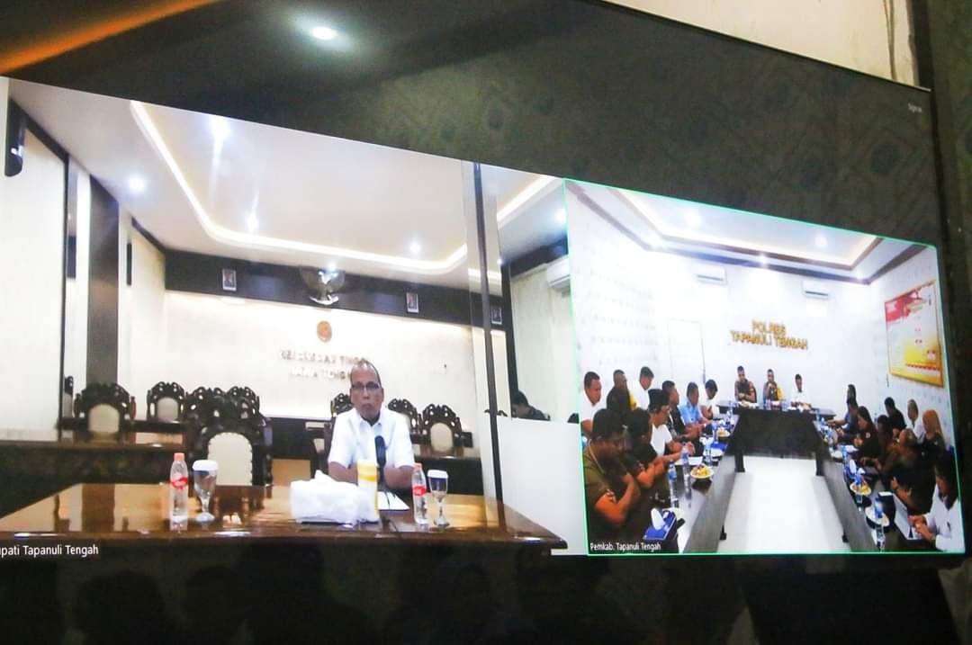 PANDAN-Pj Bupati Tapanuli Tengah Dr. Sugeng Riyanta, SH MH, melalui Via Zoom mengikuti Rapat Konsultasi Forum Koordinasi Pimpinan Daerah (Forkopimda) Kabupaten Tapanuli Tengah (Tapteng), Komisioner KPU Kabupaten Tapanuli Tengah dan Bawaslu Kabupaten Tapanuli Tengah bersama Pasangan Calon Kepala Daerah Nomor Urut 01 dan Nomor Urut 02, dilaksanakan di Mapolres Tapanuli Tengah, pada Rabu (20/11/2024)