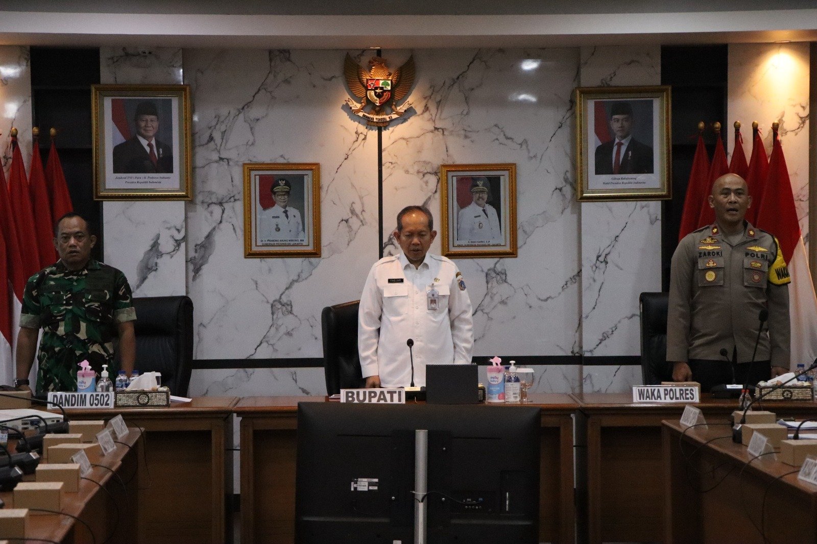Rapat dipimpin oleh Wakapolres Kepulauan Seribu Kompol Zaroki Saputra, S.H., M.H., Bupati Administrasi Kepulauan Seribu Muhammad Fadjar Kurniawan, serta Danramil Kepulauan Seribu Kapten Arh Hamzah. Kegiatan ini dihadiri oleh seluruh elemen terkait di wilayah Kepulauan Seribu, mulai dari unsur TNI-Polri, pemerintah daerah, hingga instansi pendukung lainnya.