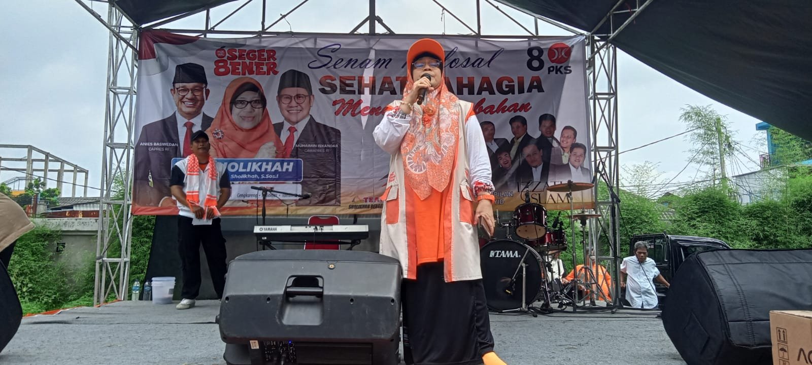 Kita akan berjanji jikalau PKS menang jikalau presiden menang jikalau Sholikhah menang kita akan ulangi untuk acara seperti ini,tipe PKS karakter PKS selalu bersama rakyat selalu membela rakyat karena PKS selalu bersama dengan rakyat selalu menyegarkan rakyat PKS selalu membuat sehat rakyat dan PKS selalu berjuang untuk rakyat,Tutup Hj Sholikhah