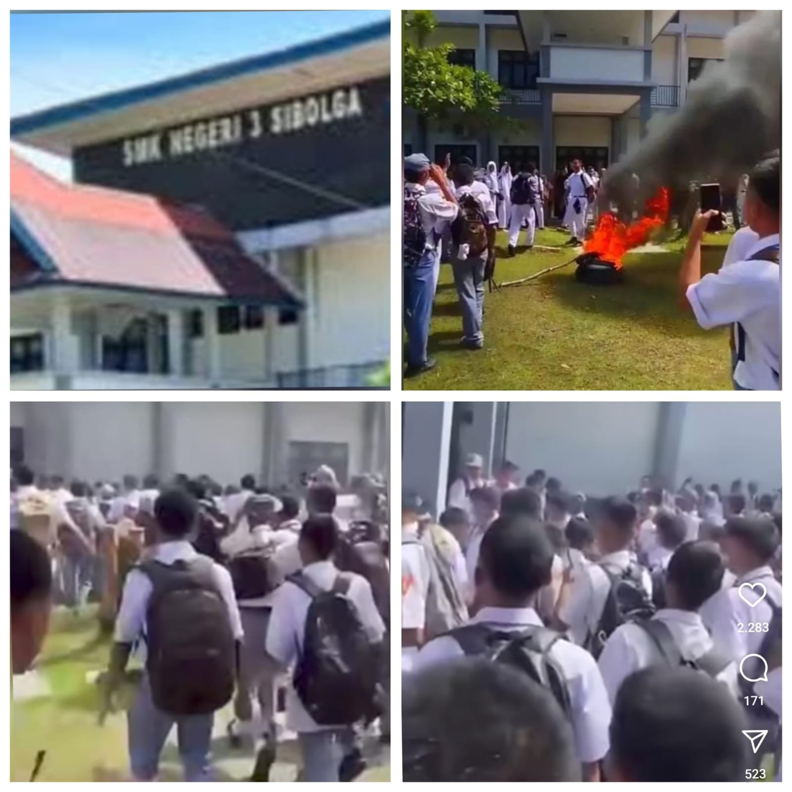 refubliknews.com,- || SIBOLGA – Ratusan siswa Sekolah Menengah Kejuruan Negeri (SMKN) 3 Sibolga menggelar aksi demonstrasi dengan membakar ban di depan sekolah pada Senin (6/10) pagi. Aksi ini dipicu oleh dugaan penyelewengan dana Bantuan Operasional Sekolah (BOS).