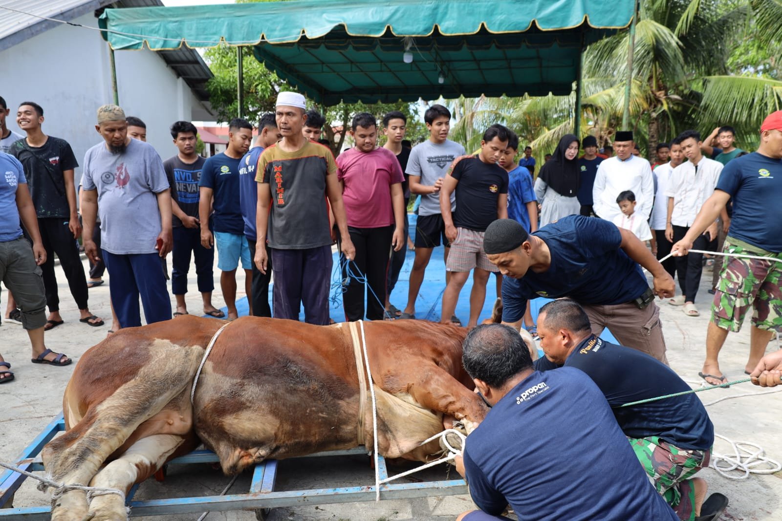 Adapun kegiatan diawali dengan pelaksanaan Sholat Idul Adha. Bertindak selaku Imam dan Khatib Ustadz H. Fauzal Habib, M.A., dilanjutkan penyembelihan hewan qurban