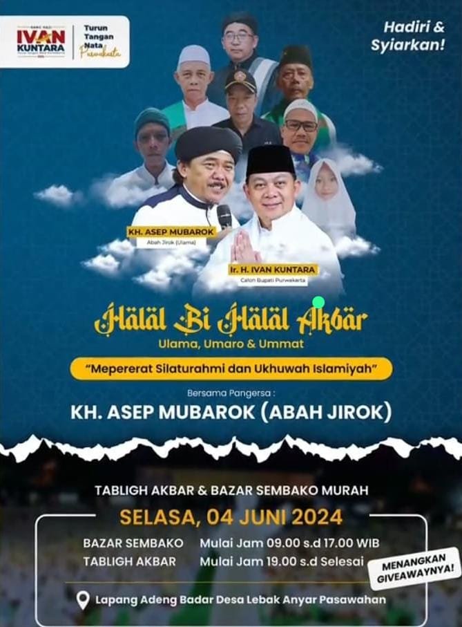 juga pemberian tanaman bibit pohon buah- buahan seperti Alpukat, Duren, Lengkeng, Pete dan lainnya dari Ivan Kuntara yang akrab dipanggil Kang Ivan “Bakal Calon Bupati Purwakarta Periode 2024-2029” sekaligus Halal Bi Halal Akbar dan Tabligh Akbar di gelar