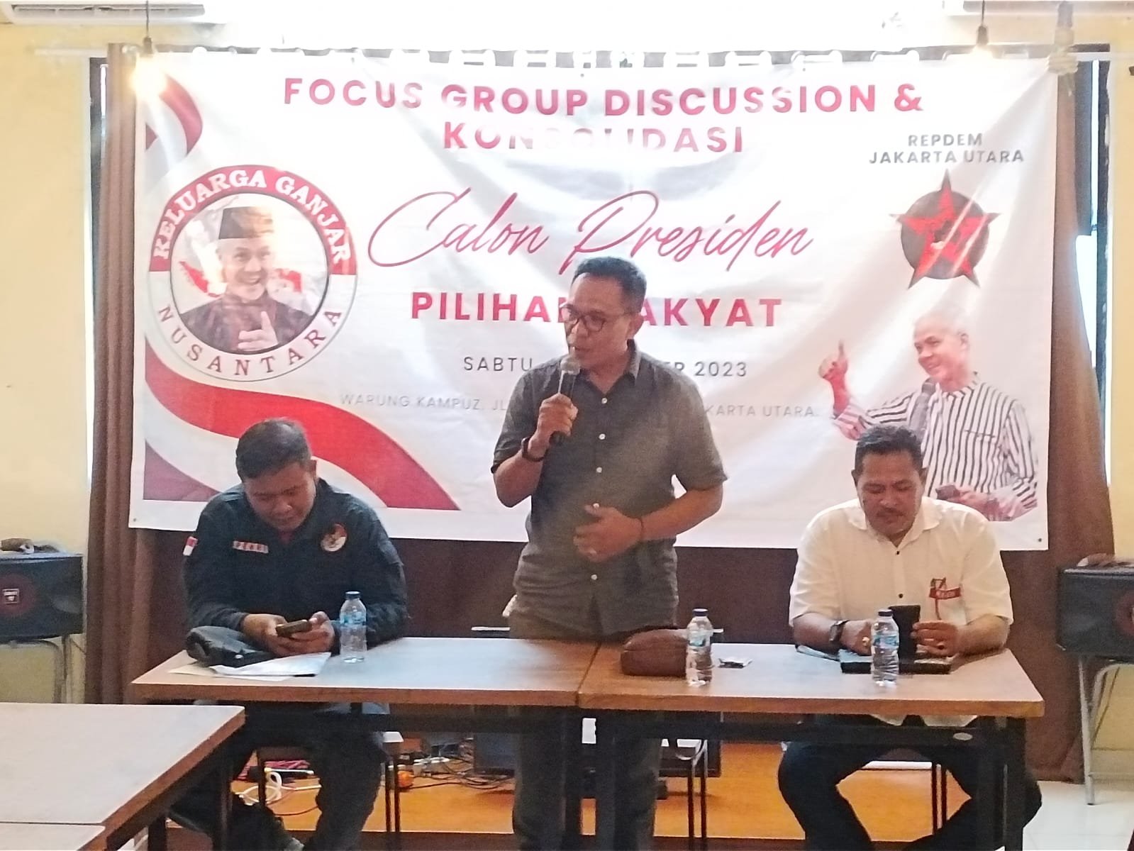 Relawan Perjuangan Demokrasi ( REPDEM ) Jakarta Utara Bersama Relawan Keluarga Ganjar Nusantara ( RKGN ) gelar kegiatan Focus Group Discussion (FGD) Dan Konsoldasi untuk memenangkan Ganjar Pranowo Presiden 2024,sabtu,07/10/2023 di Jalan Kebon Bawang 6.di warung kampus Jakarta utara.