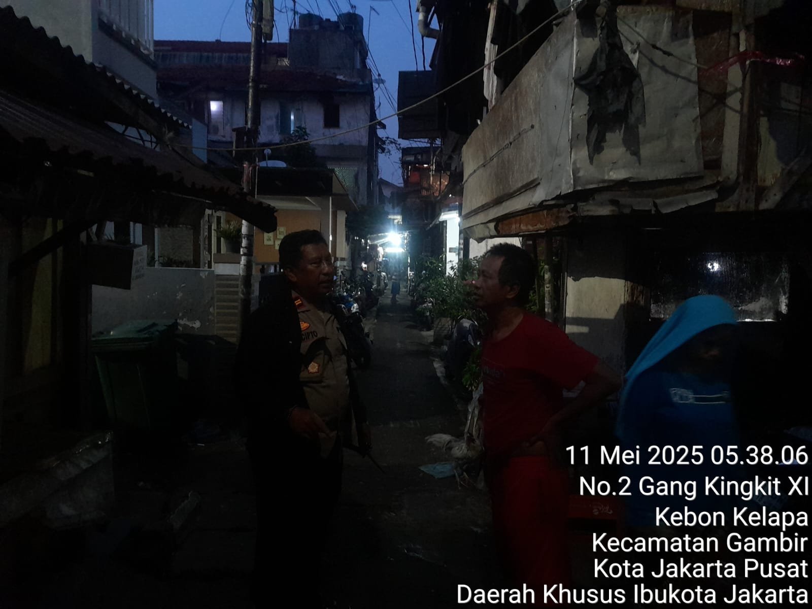 Kapolsubsektor Monas Timur, Iptu Sucipto, SH, bersama personel piket Intelkam Polsek Metro Gambir langsung melakukan pengecekan ke lokasi setelah menerima laporan dari Kombes Pol Tri Suhartanto, S.I.K., selaku Ka Siaga A Mabes Polri. Laporan tersebut berasal dari warga bernama Iwan, yang mengadukan adanya aksi sekelompok orang berusia sekitar 25–30 tahun yang berteriak-teriak hingga mengganggu ketenangan lingkungan sekitar di Jalan Ir. H. Juanda IB No. 27, RT 13 RW 001, Kelurahan Kebon Kelapa.