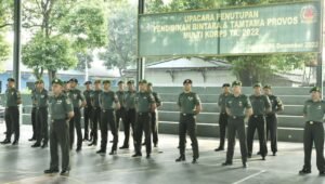 Komandan Rindam Jaya Kolonel Inf Ayub Akbar resmi menutup Pendidikan Bintara Provos dan Tamtama Provost TA. 2022 sebanyak 40 siswa, bertempat di Lapangan Indoor Satdik Belanegara Rindam Jaya, Jalan Raya Condet, Pasar Rebo, Jakarta Timur. (Selasa, 06/12/2022).