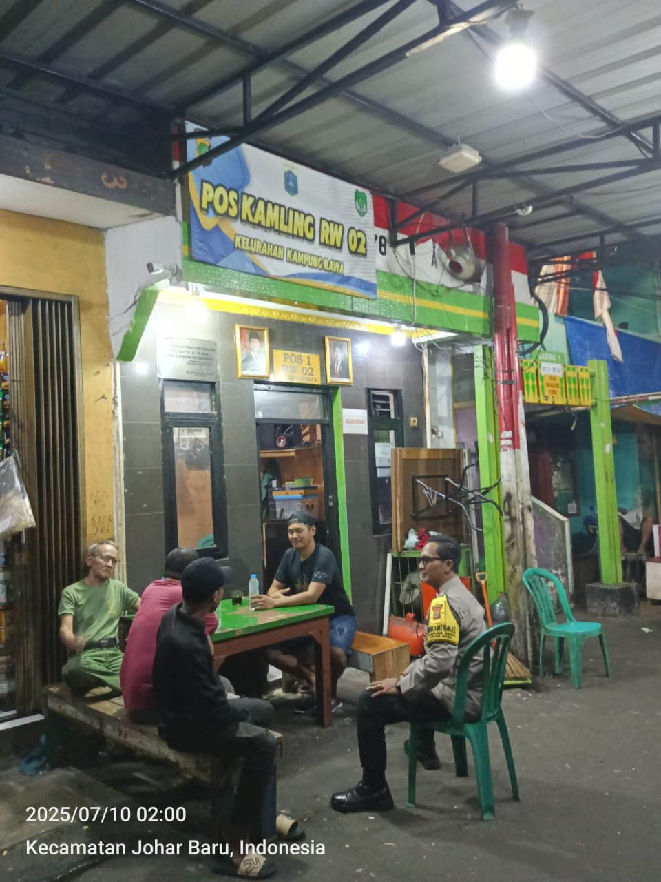 refubliknews.com, || Jakarta Pusat — Dalam upaya menciptakan situasi kamtibmas yang kondusif di wilayah binaannya, Bhabinkamtibmas Kelurahan Kampung Rawa Aipda Ikhwan melakukan sambang malam ke Pos Satkamling RW 02, yang terletak di Jl. Rawa Sawah 3, Kelurahan Kampung Rawa, Kecamatan Johar Baru, pada Kamis dini hari, 10 Juli 2025 pukul 01.30 WIB.
