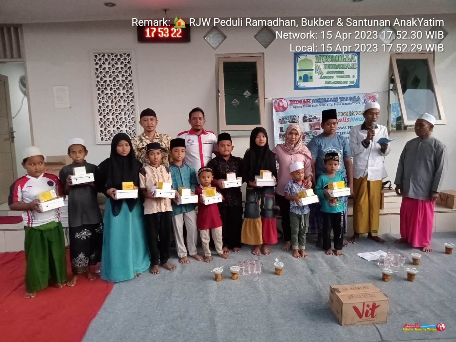 Ustad Subadra sampaikan” kami atas nama pengurus musholla Al Hidayah mengucapkan banyak terima kasih atas kepedulian Rumah Jurnalis Warga terhadap anak-anak yatim yang ada di wilayah kami”, ucapnya.