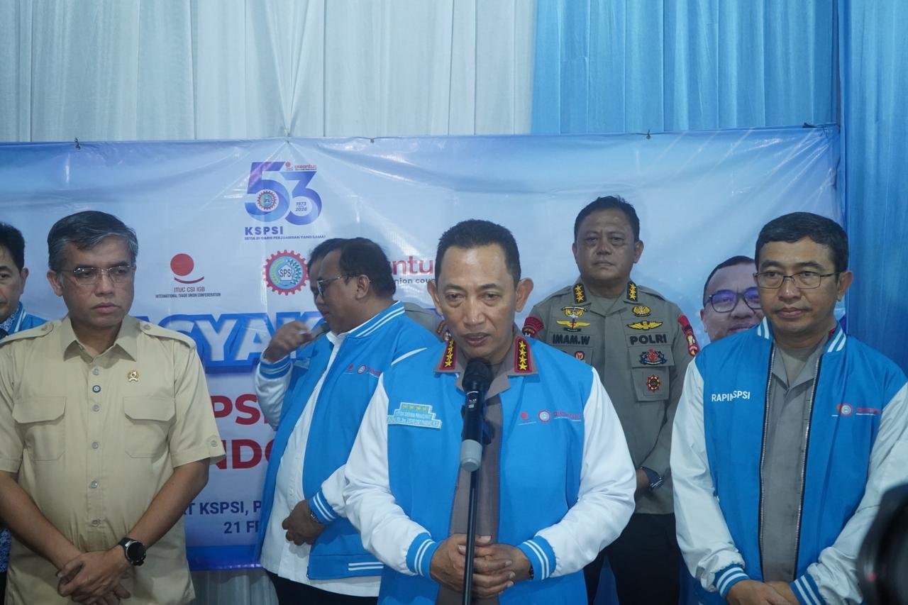 “Kita berharap kesejahteraan buruh semakin meningkat, baik dari sisi perlindungan kerja, jaminan sosial, maupun akses terhadap layanan kesehatan,” ujar Kapolri.