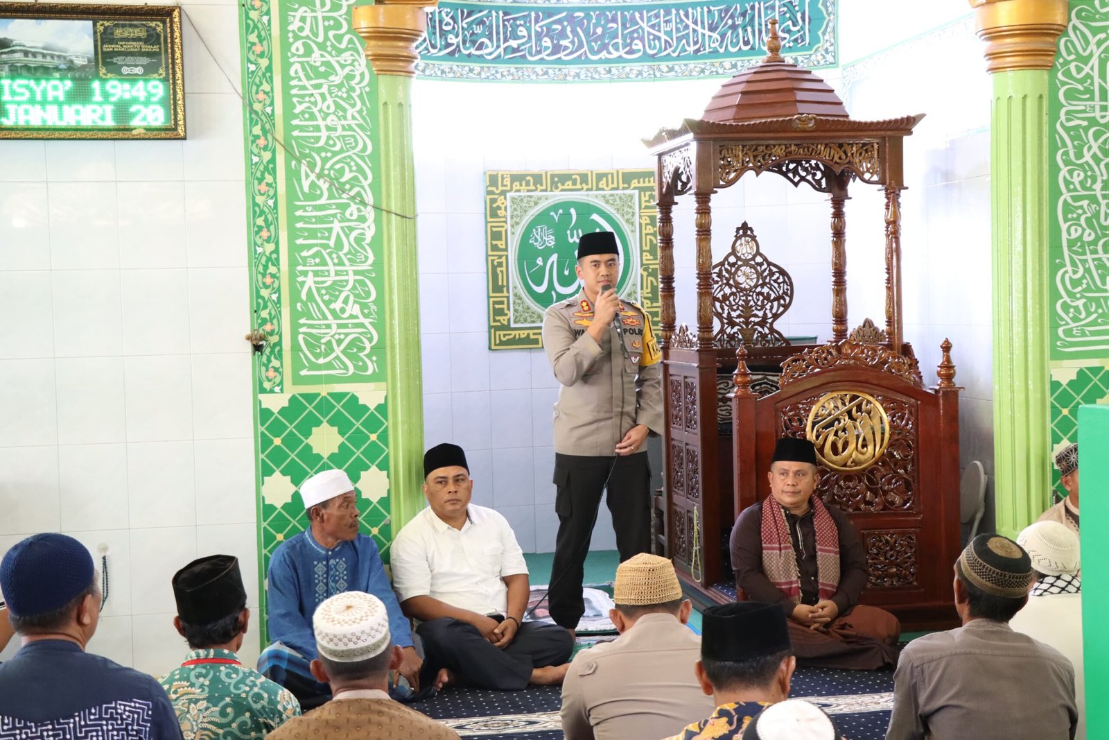 Tapteng – Kapolres Tapanuli Tengah AKBP Wahyu Endrajaya, S.I.K., M.Si didampingi oleh Pejabat Utama Polres Tapanuli Tengah melaksanakan safari Jumat di Masjid Silaturrahim Hajoran Kabupaten Tapanuli Tengah. Jum’at (31/01/2025) siang.