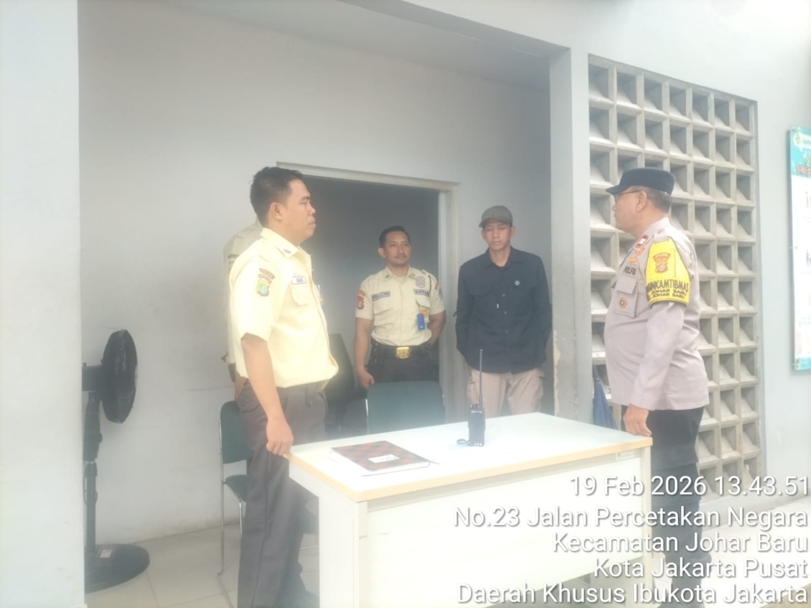 Kegiatan berlangsung di Pergudangan Kemenkes RI, Jl. Percetakan Negara II RW 07, Kelurahan Johar Baru, Jakarta Pusat. Patroli dan sambang dilakukan oleh Aiptu Sunarto selaku Bhabinkamtibmas Kelurahan Johar Baru bersama Bpk. Niftah dan anggota security setempat.