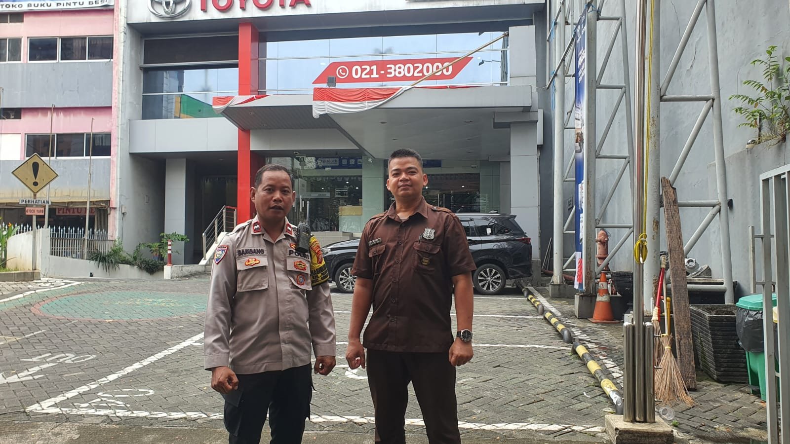 Dalam kegiatan tersebut, petugas bertemu dengan Wisnu, satpam Auto 2000, untuk menjalin komunikasi dan memastikan situasi kamtibmas tetap aman dan kondusif.