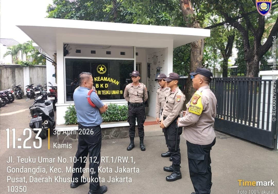 Jakarta Pusat – Komitmen menjaga situasi keamanan dan ketertiban masyarakat (kamtibmas) yang aman dan kondusif terus diperkuat jajaran Polsek Metro Menteng melalui pendekatan humanis. Bhabinkamtibmas Kelurahan Gondangdia, Aiptu Kamidi, bersama siswa Latihan Kerja (Latja) Diktukba Polri Tahun 2026 melaksanakan kegiatan sambang wilayah di Kantor Setneg yang berlokasi di Jalan Teuku Umar No. 10 serta Kantor Kelurahan Gondangdia di Jalan Jambu No. 2A, Menteng, Jakarta Pusat. Kamis (30/4/2026)