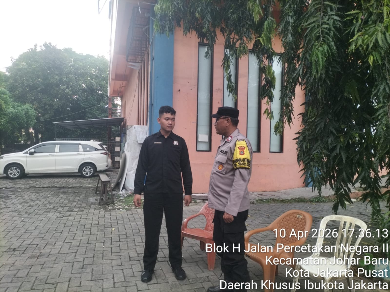 refubliknews.com, || Jakarta Pusat – Dalam upaya menjaga situasi kamtibmas tetap aman dan kondusif, jajaran Polsek Johar Baru melalui Bhabinkamtibmas Kelurahan Johar Baru, Aiptu Sunarto, melaksanakan patroli wilayah sekaligus sambang ke Gedung UKM RW 10, Kelurahan Johar Baru, pada Jumat (10/4/2026) pukul 17.00 WIB.