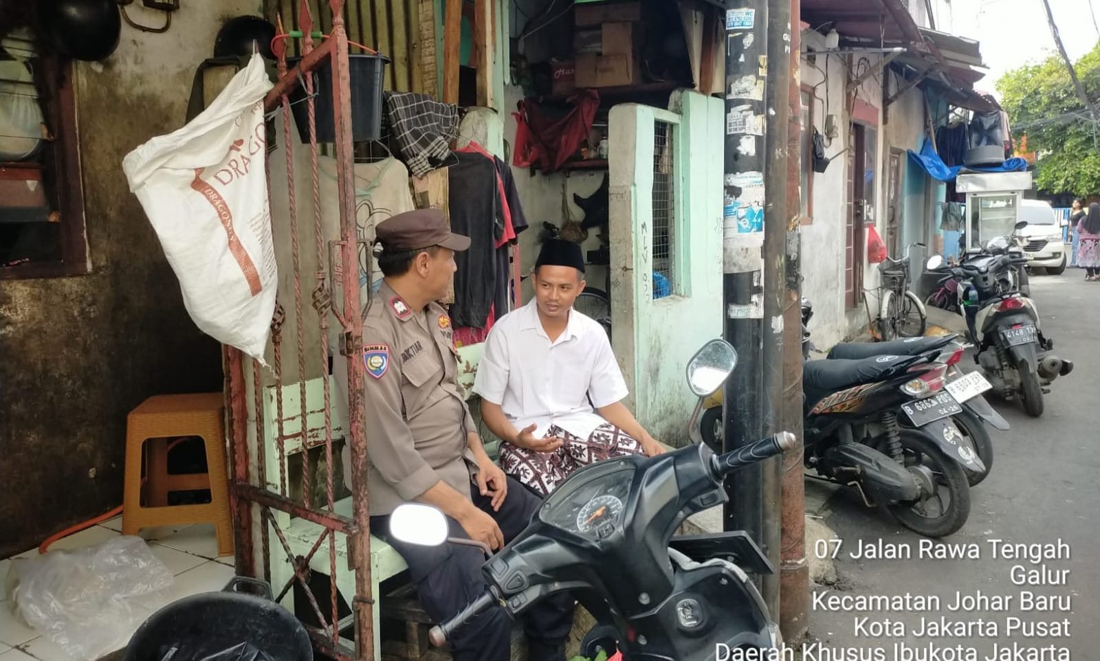 refubliknews.com, – Jakarta Pusat – Bhabinkamtibmas Kelurahan Galur Aiptu Baktiar Emri, mengadakan kegiatan sambang Kamtibmas dengan tujuan untuk mempererat hubungan silaturahmi antara aparat kepolisian dengan tokoh agama setempat. Kegiatan ini dilaksanakan di Jalan Rawa Tengah RT 08 RW 06 Kelurahan Galur, Kecamatan Johar Baru Jakarta Pusat. Selasa (11/02/2025).
