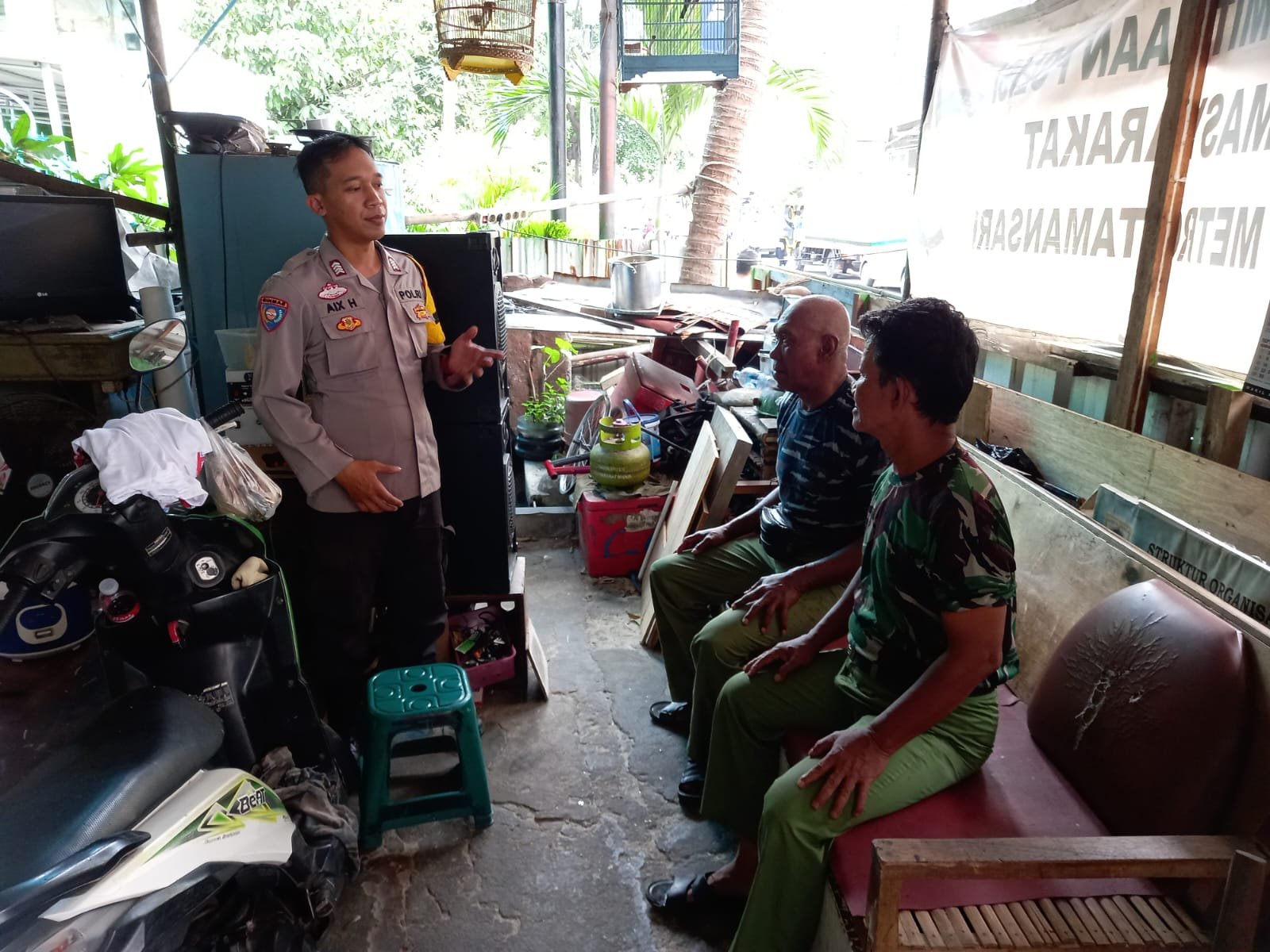Dalam upaya mencegah potensi gangguan Kamtibmas menjelang Pemilu 2024, Bripka Aik H melakukan kegiatan sambang dan binluh di Pos Kamling RW 05, Selasa, 16/1/2024.
