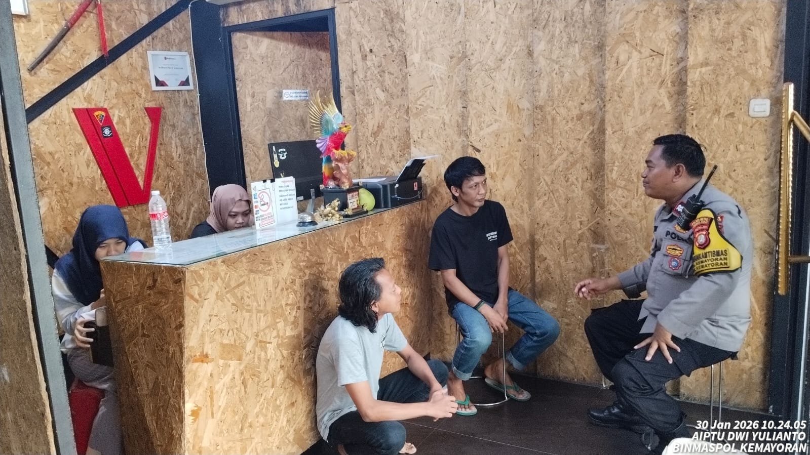 Kegiatan sambang tersebut dilakukan oleh Aiptu Dwi Yulianto, selaku Bhabinkamtibmas Kelurahan Kemayoran, dengan menyambangi Jung Kian, korban sekaligus pelapor dalam kasus dugaan pengeroyokan yang terjadi di Hotel Reddors Kemayoran, Jalan Kepu Timur, Jakarta Pusat.