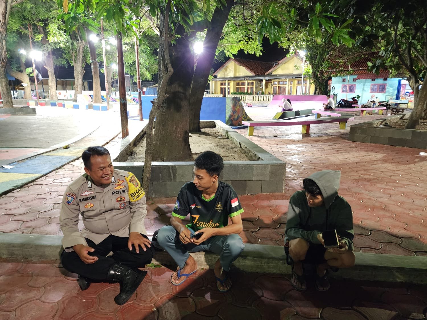 Bhabinkamtibmas Pulau Pramuka, Polsek Kepulauan Seribu Utara, Polres Kepulauan Seribu Bripka Marwansyah melaksakan sambang kepada remaja yang sedang berkumpul di malam hari.