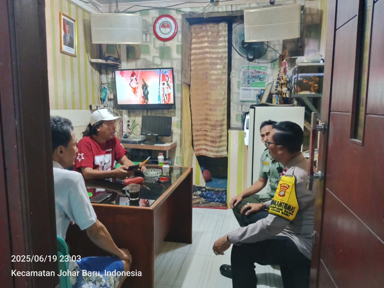 Selain menyampaikan pesan keamanan, Aipda Ikhwan juga bertukar informasi kewilayahan, memperkuat komunikasi antara kepolisian dan pengurus lingkungan. Warga diimbau untuk segera melapor ke Call Center 110, Polsek Johar Baru, atau Bhabinkamtibmas, bila menemukan indikasi gangguan kamtibmas maupun peredaran narkoba.