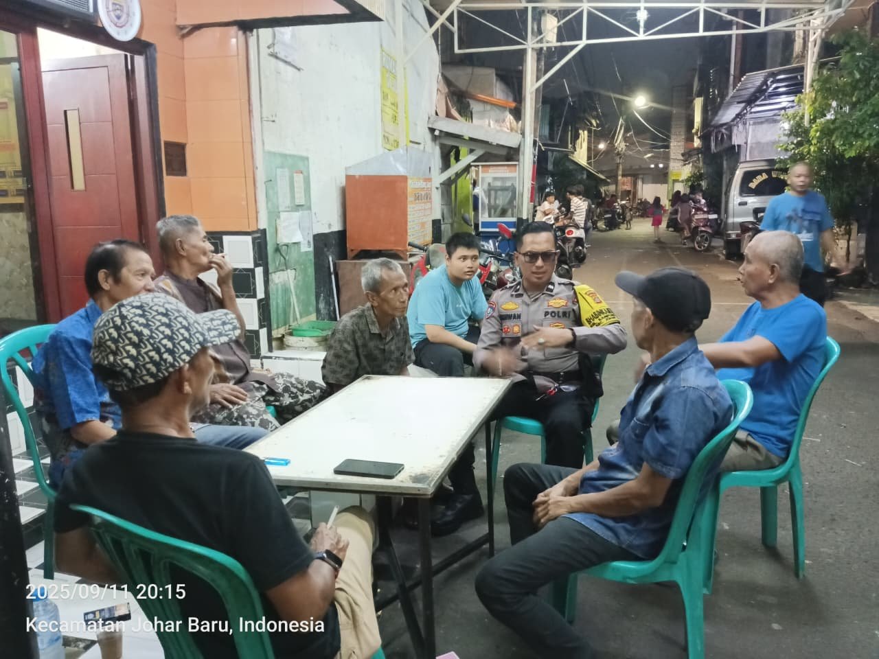 refubliknews.com, || Jakarta Pusat – Bhabinkamtibmas Kelurahan Kampung Rawa Aipda Ikhwan melaksanakan kegiatan cooling system, patroli wilayah, dan door to door sambang di RW 01, Jl. Rawa Sawah 3 RT 01 RW 01, Kelurahan Kampung Rawa, Kecamatan Johar Baru, Jakarta Pusat. Pada Kamis (11/9/2025) pukul 20.00 WIB.