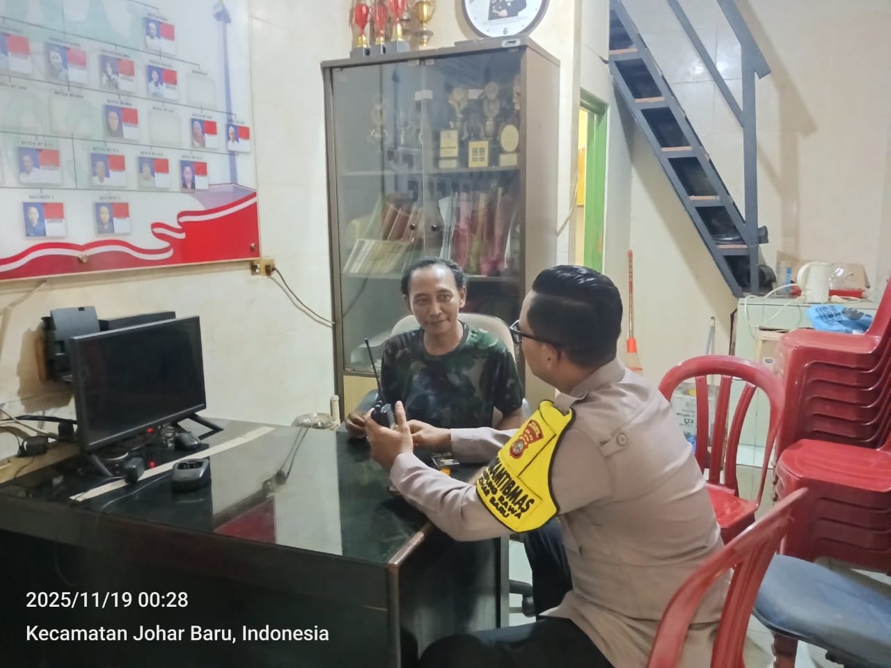 refubliknews.com, || Jakarta Pusat – Bhabinkamtibmas Kelurahan Kampung Rawa, Aipda Ikhwan, melaksanakan patroli dan kunjungan ke Pos Kamling RW 03, Jl. Rawa Sawah 4 RT 05 RW 03, Rabu (19/11/2025) pukul 00.30 WIB.