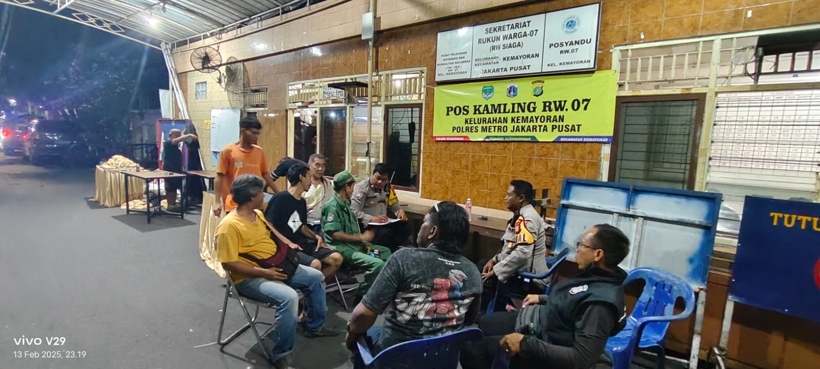 Meneruskan Pesan Kapolres Metro Jakarta Pusat Kombes. Pol Susatyo Purnomo Condro melalui Kapolsek Kemayoran Kompol Agung Ardiansyah, mengatakan, “kegiatan sambang dan kontrol pos kamling yang dilakukan oleh personel Polsek Kemayoran tersebut merupakan kegiatan rutin setiap malamnya, yakni sebagai sarana untuk menyampaikan pesan-pesan kamtibmas kepada warga.