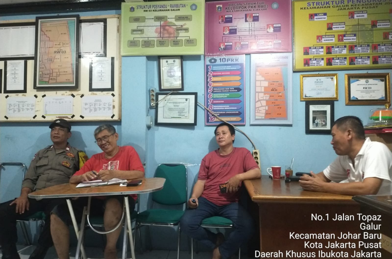 refubliknews.com, – Jakarta Pusat – Pada hari Minggu, tanggal 16 Februari 2025, pukul 20.30 WIB, Bhabinkamtibmas Kelurahan Galur Aiptu Baktiar Emri, mengadakan kegiatan sambang Pos RW untuk melakukan Cooling System dengan pengurus RW, bapak Beny dan pengurus RW yang lainnya di wilayah RW 03 Galur. Jalan Topaz RW 03 Kelurahan Galur, Kecamatan Johar Baru Jakarta Pusat. Senin (17/02/2025).