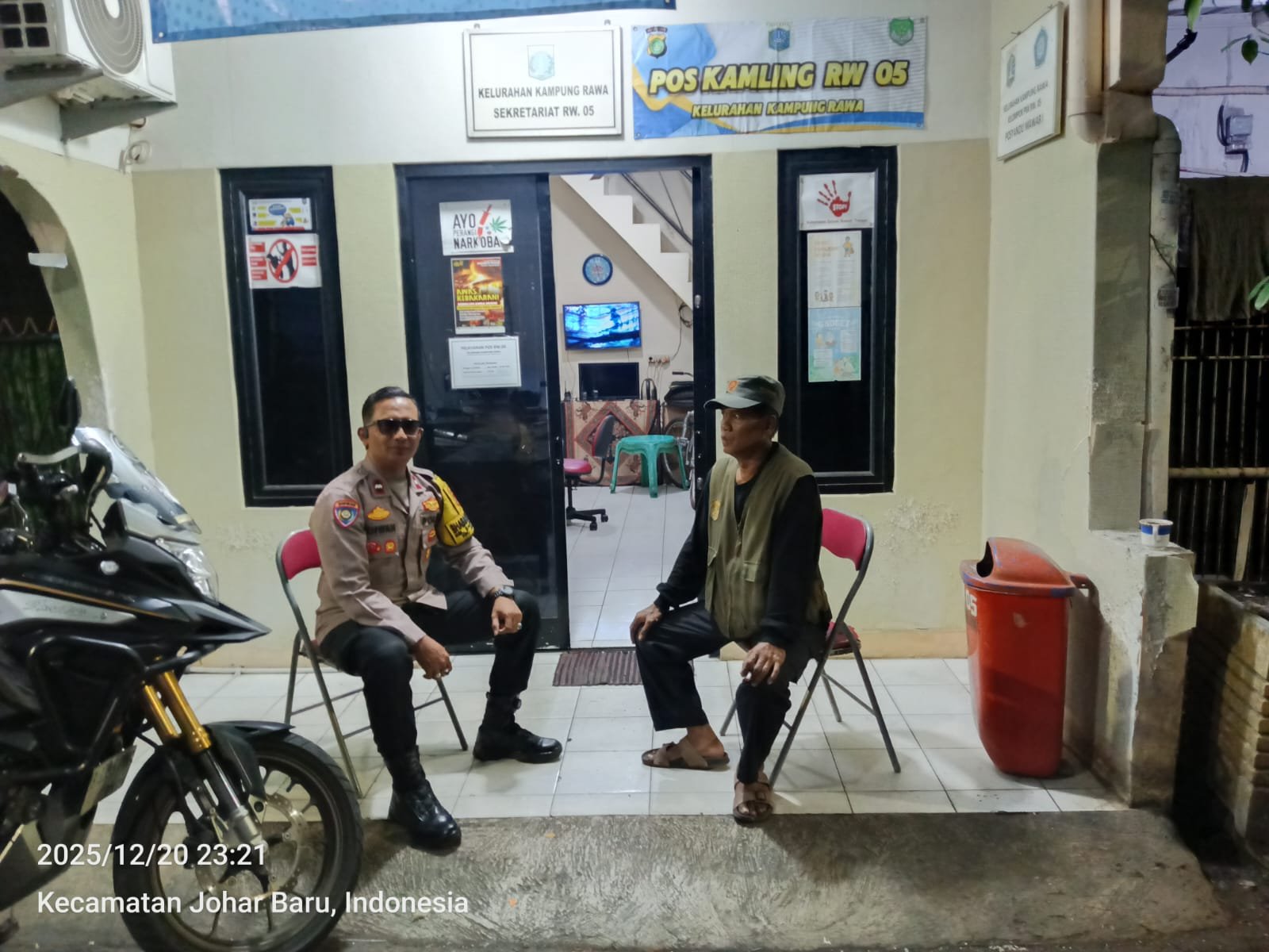 Jakarta Pusat — Dalam rangka menjaga keamanan dan ketertiban masyarakat (kamtibmas), Bhabinkamtibmas Kelurahan Kampung Rawa Polsek Johar Baru melaksanakan patroli wilayah sekaligus sambang ke Pos Satkamling RW 05, Kelurahan Kampung Rawa, Kecamatan Johar Baru, Jakarta Pusat, Sabtu malam (20/12/2025) pukul 23.20 WIB.