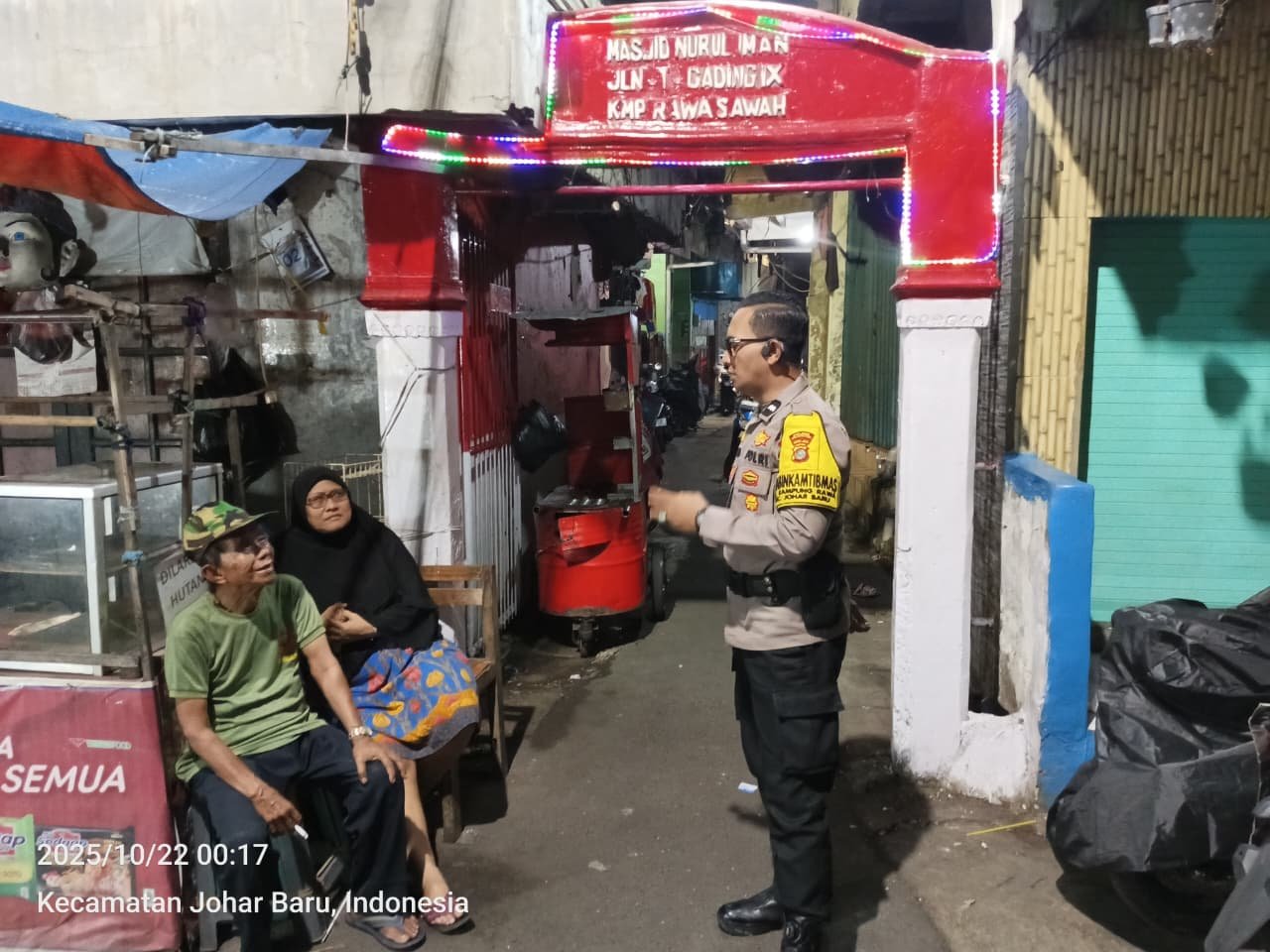 refubliknews.com, || Jakarta Pusat – Sebagai upaya menjaga keamanan dan ketertiban masyarakat, Bhabinkamtibmas Kelurahan Kampung Rawa, Aipda Ikhwan, melaksanakan patroli wilayah dan kunjungan ke Pos Satkamling RW 03, Jl. Rawa Sawah 4 RT 08 RW 03, Kelurahan Kampung Rawa, Kecamatan Johar Baru, Rabu (22/10/2025) pukul 00.17 WIB.