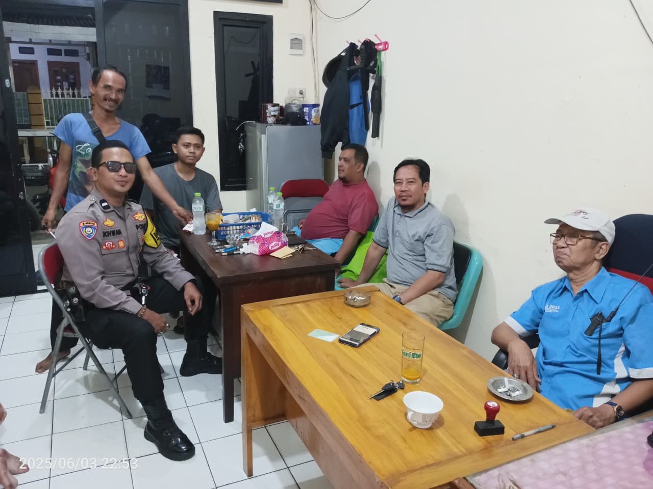 Dalam kegiatan tersebut, Aipda Ikhwan bertemu dengan Pak Chairudin, Ketua RW 05 sekaligus awak Satkamling, untuk berdialog dan bertukar informasi terkait situasi keamanan dan ketertiban lingkungan. Kegiatan ini menjadi bagian dari upaya deteksi dini dan pencegahan dini guna menciptakan situasi yang aman dan kondusif menjelang Idul Adha.