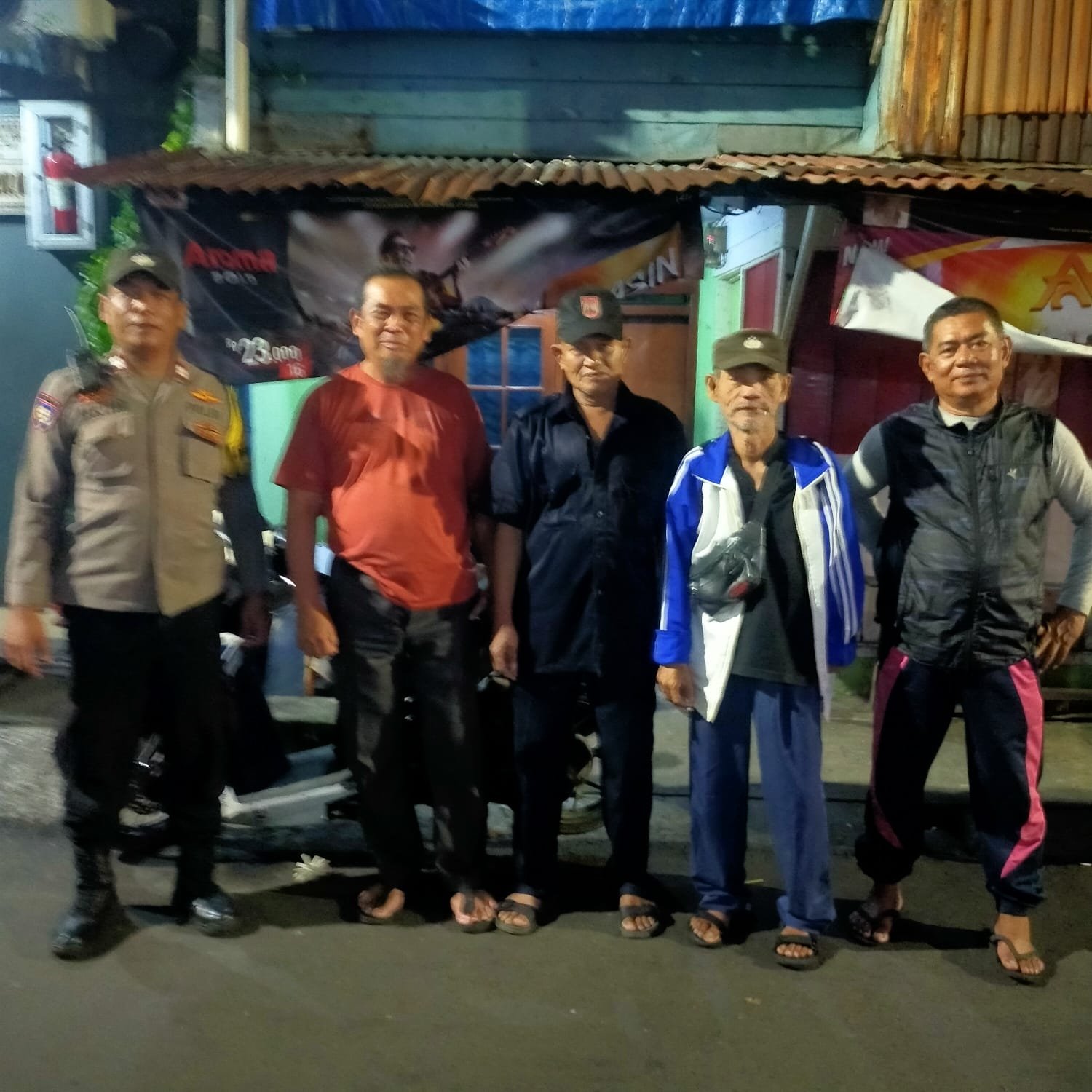 Kegiatan ini turut dihadiri oleh Ketua RW 01, Bapak H. Didin, bersama anggota hansip, Pak Syahri dan Pak Soma. Kehadiran mereka menunjukkan sinergi antara unsur masyarakat dan kepolisian dalam menjaga keamanan lingkungan secara gotong royong.